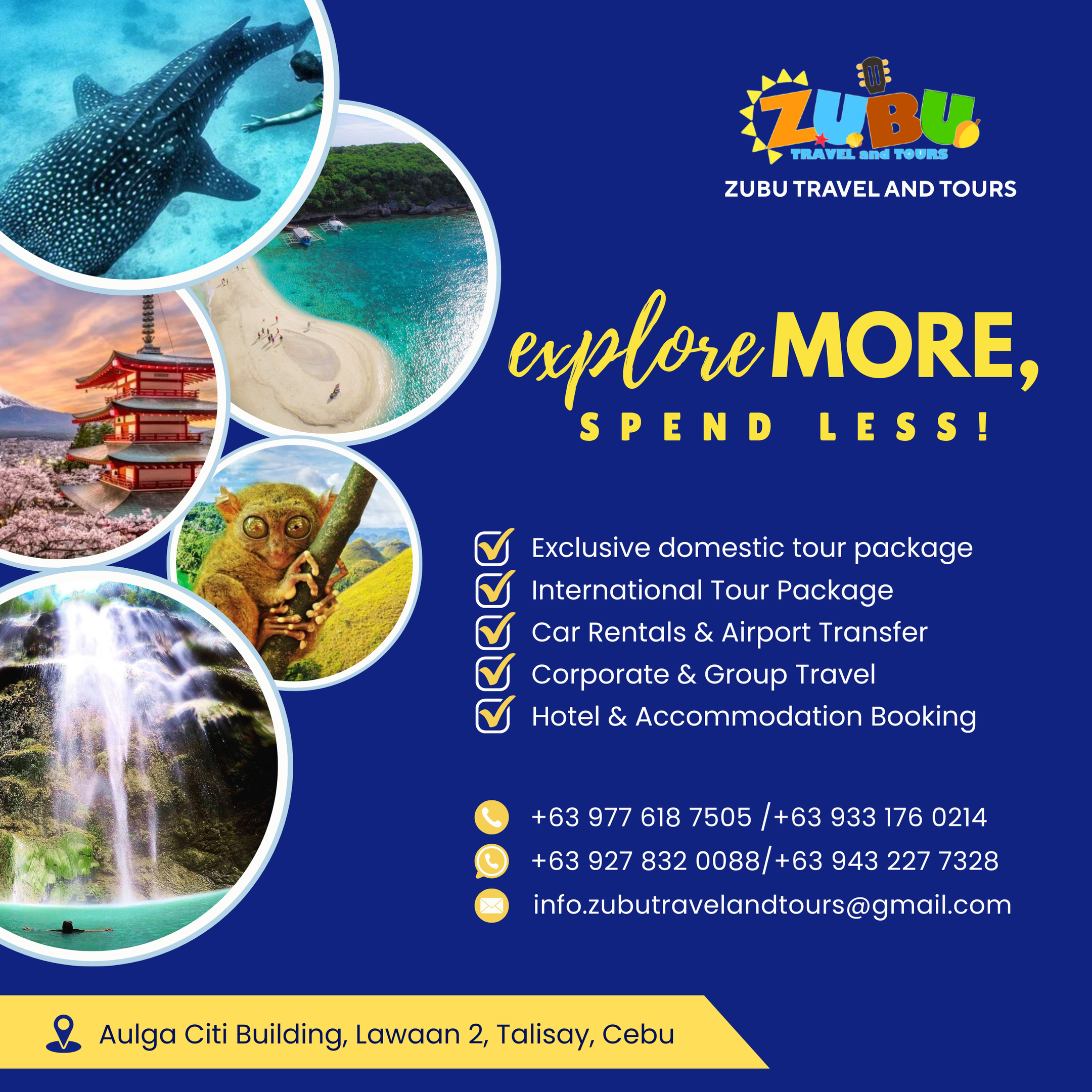 Zubu Travel, Tours and Car Rental Service has been helping travelers explore the Philippines and beyond for over 10 years. Based in Cebu, our trusted travel company offers budget-friendly car rentals, personalized local tour packages, and exciting international travel deals.